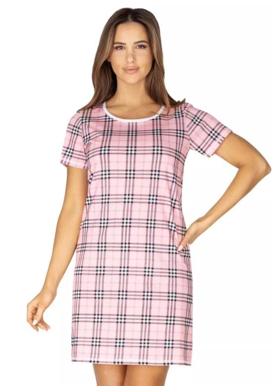 Vzorem je jemná kostka na světlém podkladu, která dodává noční košili svěží a moderní vzhled.