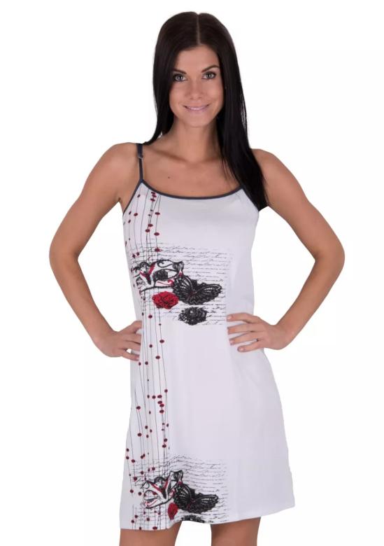 Dámská noční košile Alejandra III DE LAFENSE je elegantní kousek určený pro pohodlné spaní i volný čas doma. Tato košile na úzká ramínka zaujme svým jemným vzorem s květinovými a motýlími motivy, které jí dodávají jedinečný styl bez krajkových doplňků.