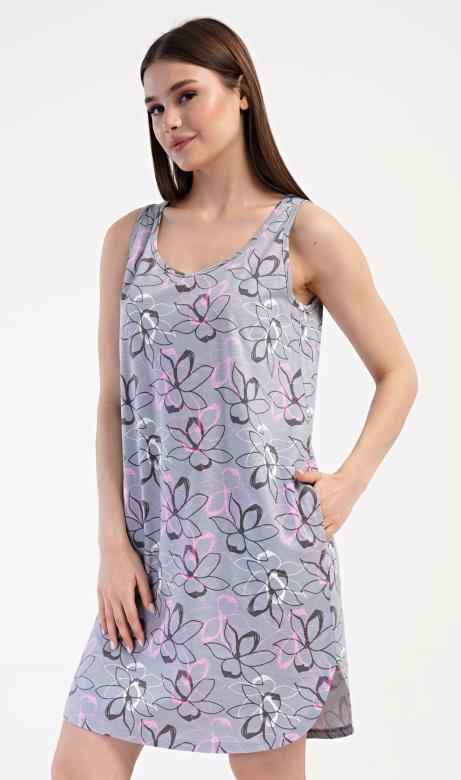 Dámská bavlněná noční košile na ramínka Mia. Noční košile se širšími ramínky a kulatým výstřihem má praktické kapsy, je potištěna květy. Použitý materiál s obsahem bavlny 100% je příjemný a poddajný na dotek. Košile je vhodná i na denní nošení, obvzlášť ji oceníte v horkých letních dnech. Pokyny pro údržbu:-100 % bavlna- lze prát v pračce při teplotě do 30°- nesušit v sušičce- žehlit z rubu do 110°- nepoužívat bělící prostředky- nečistit chemickyMíry naměřené na výrobku: 4282465598 MiaSMLXLobvod hrudníku…