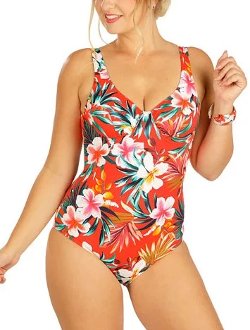 Hezké dámské jednodílné plavky s kosticí Litex v květinovém vzoru.