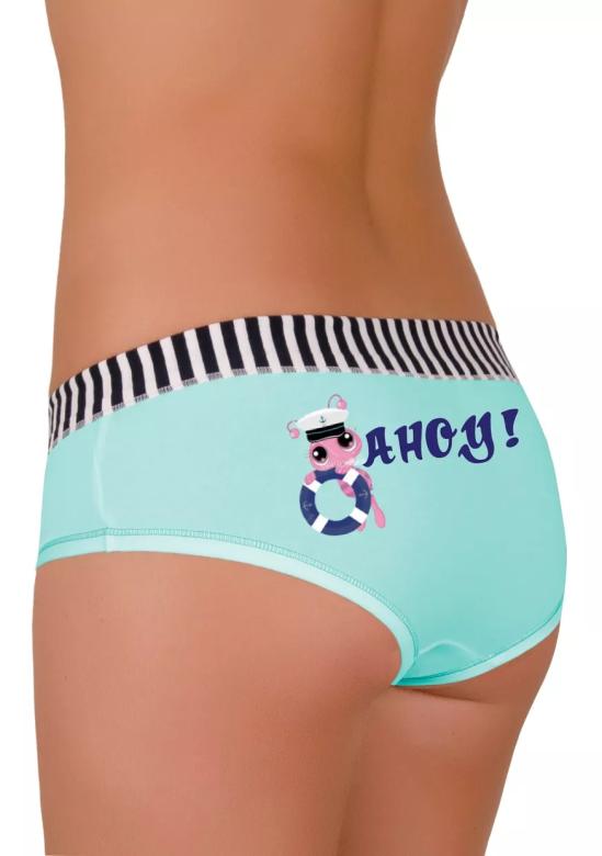 dámské bavlněné kalhotky v tyrkysové barvě a vzadu s nápisem AHOY.