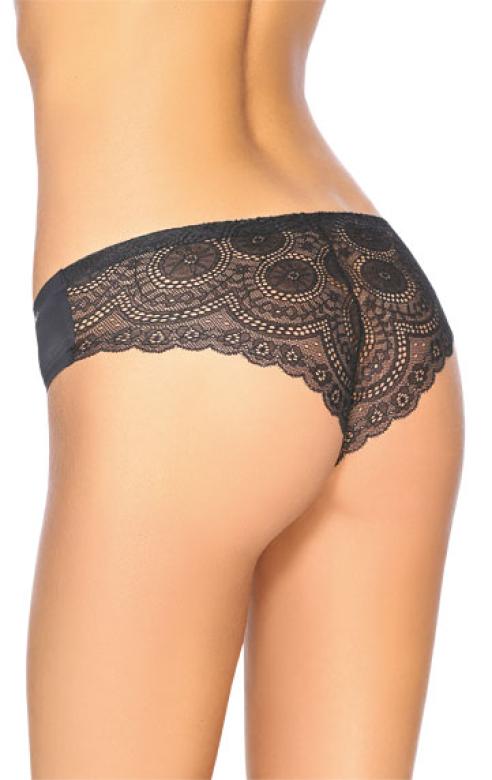Zdobené krajkou. Lepené kraje kalhotek. Jemný elastický materiál. Ideláně drží na těle a dodává pocit pohodlí a komfortu. 88% Polyamid + 12% Elastan 901 černá S, M, L, XL