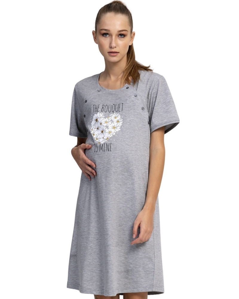 Pohodlná dámská noční košile mateřská Srdce z kopretin.