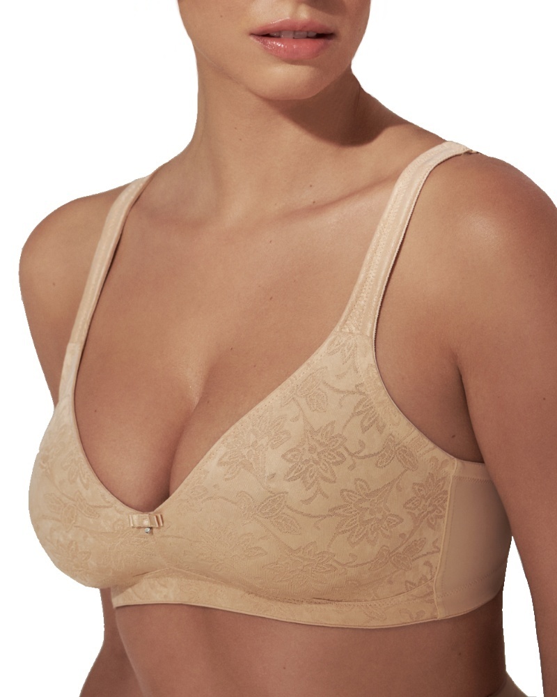 Pohodlná podprsenka má nevyztužené košíčky bez kostic v jemném vyráženém krajkovém vzhledu.